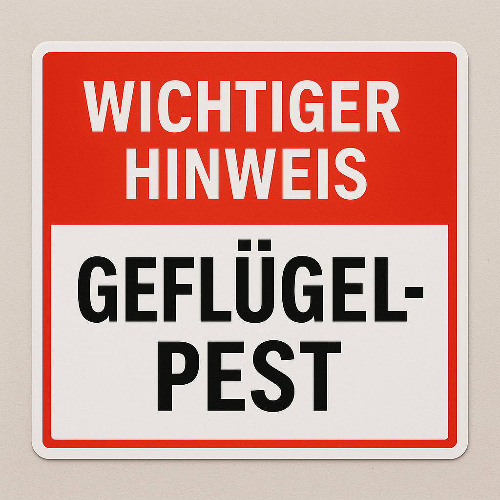 - Achten Sie auf Symptome bei Ihrem Geflügel: plötzlich steigende Verluste, Atemnot, Federverlust, ungewöhnliches Verhalten – melden Sie diese unverzüglich dem Veterinäramt.